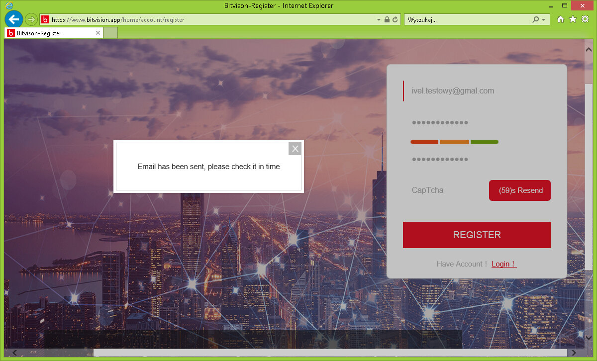 Så här registrerar du ett konto via webbplatsen Bitvision.app