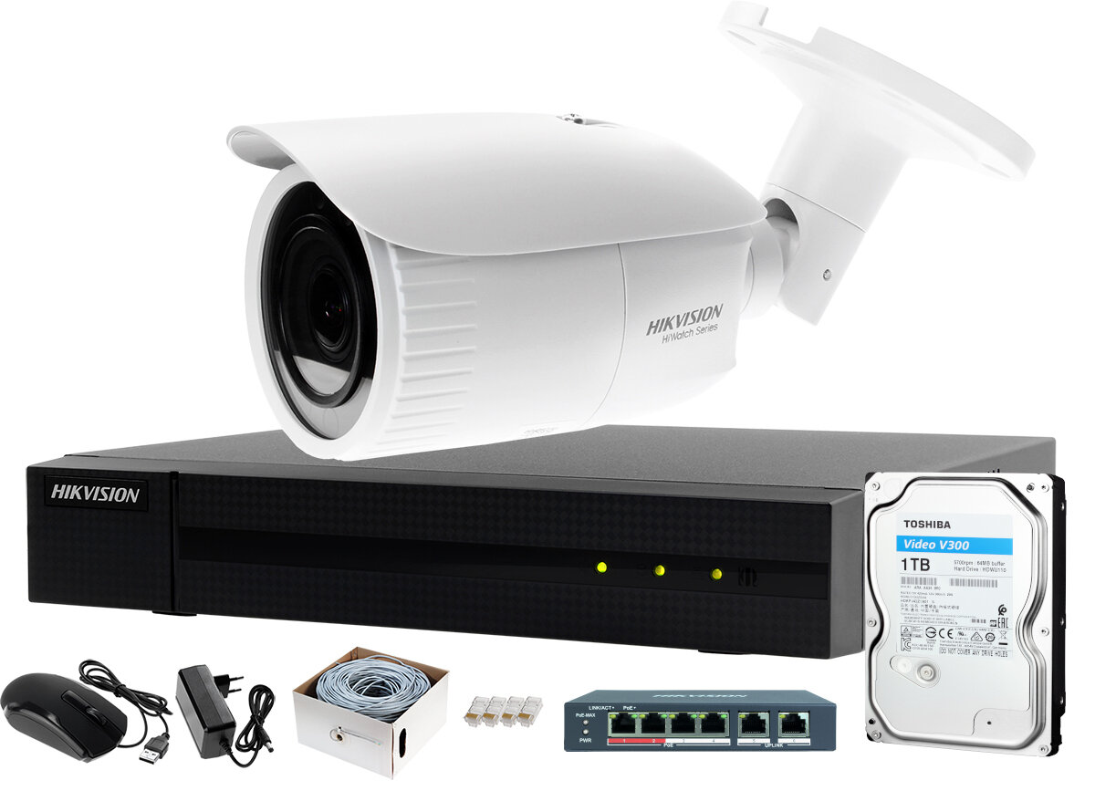 Gårds- och torgövervakningssystem Hikvision Hiwatch IP-registrator HWN-4104MH + 1x Kamera 4Mpx HWI-B640H-V + Tillbehör
