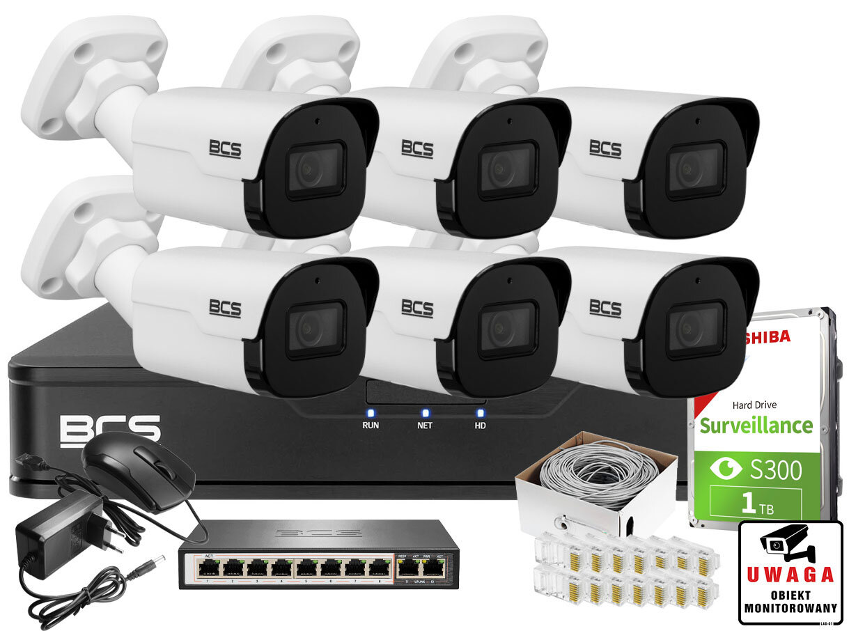 - Komplett set BCS Point 8-kanals DVR med 6 IP-kameror