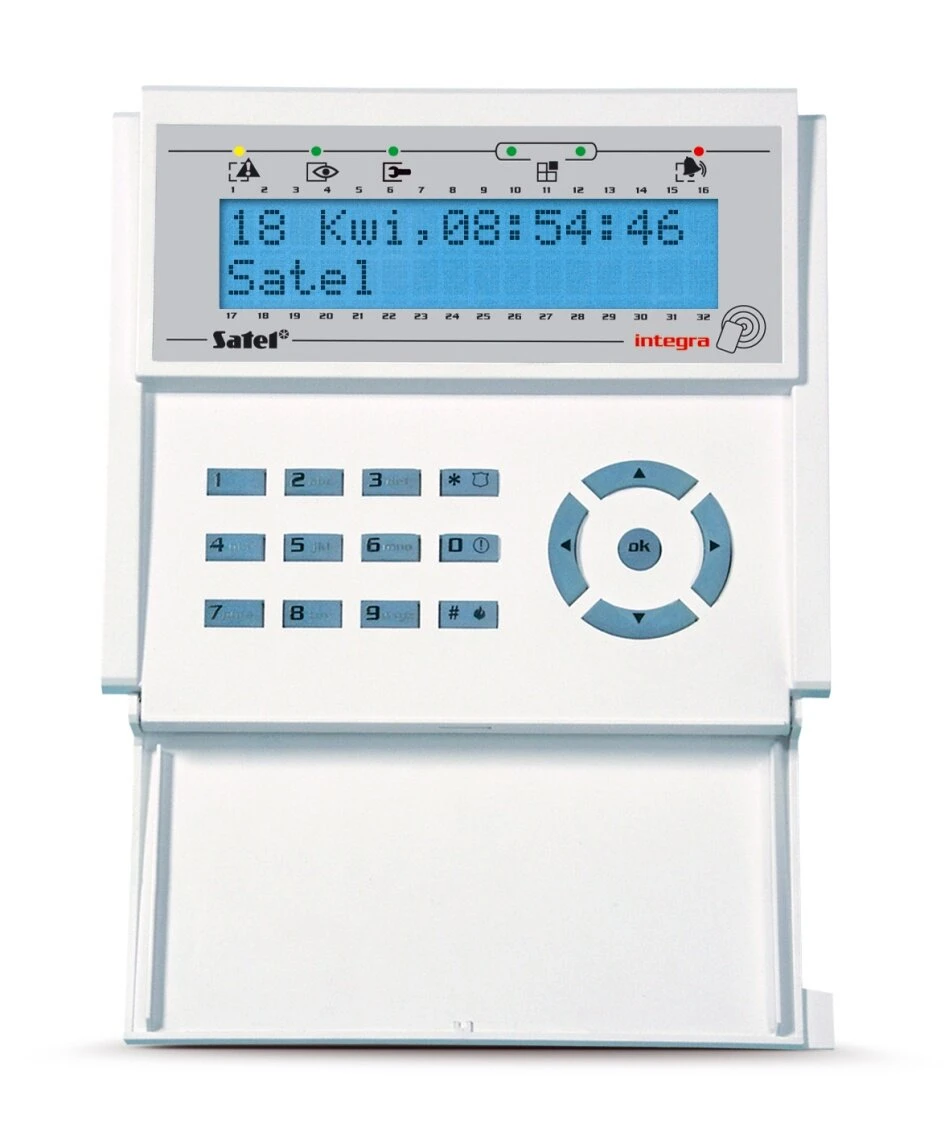 - Panik-, brand- och HELP-larm som aktiveras från knappsatsen