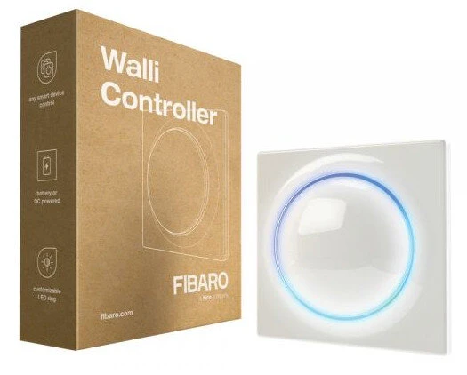 FIBARO Walli Controller är en väggmonterad Z-Wave™ smartknapp som kan utlösa scener eller styra andra Z-Wave-enheter via association. Drivs av det medföljande batteriet eller likström. Enheten är lämplig för Walli multi-frames.