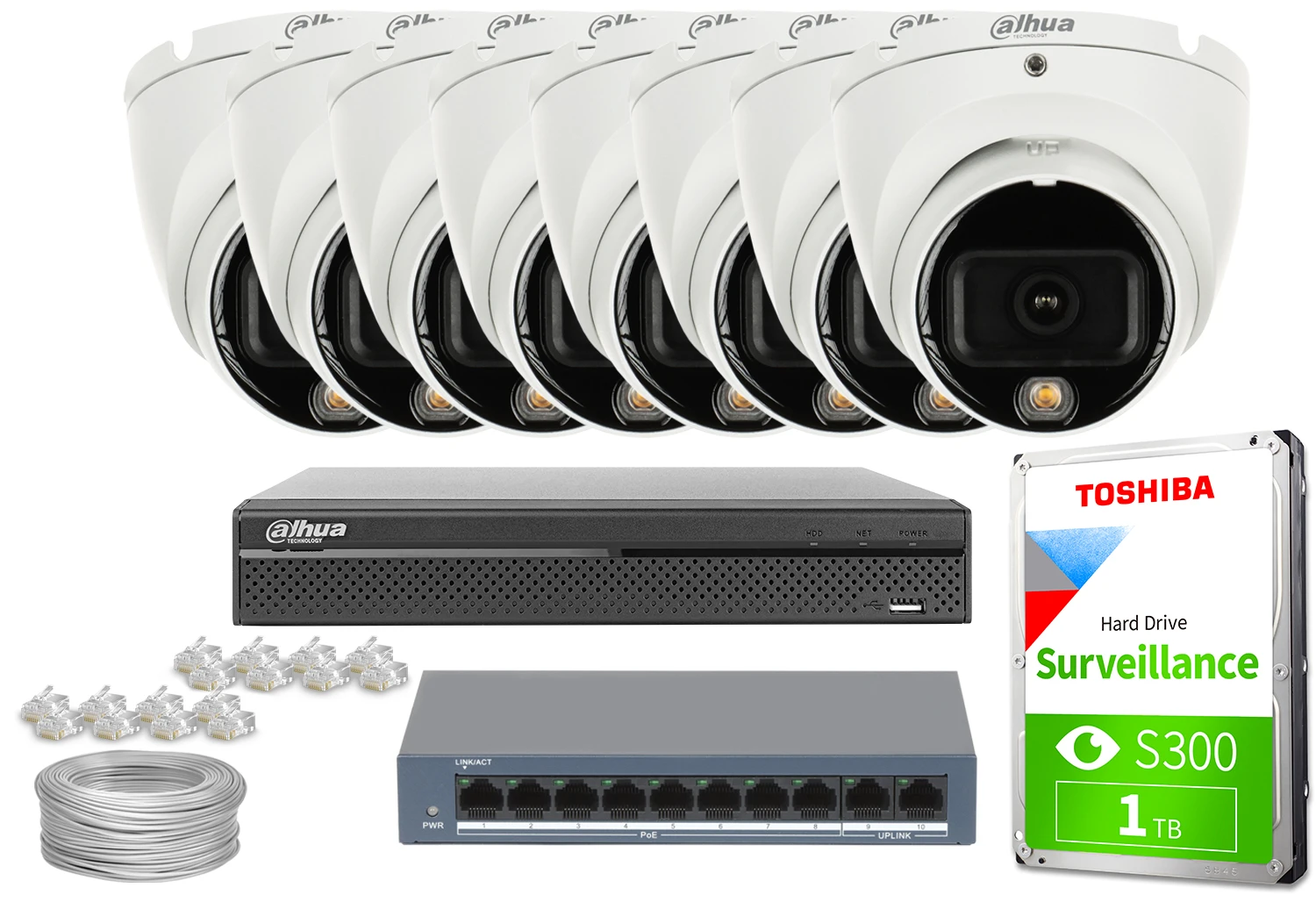Dahua IP-övervakningsset 8x IPC-HDW1639T-A-IL-0280B-S6 Smart Dual Light 6 Mpx 2.8mm Dahua