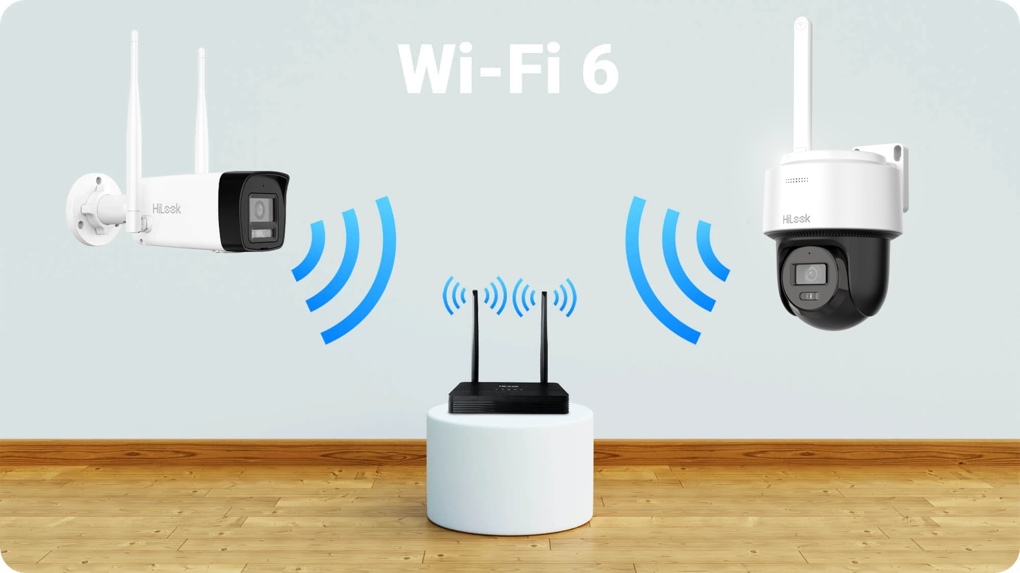 Wi-Fi 6 (802.11ax) i övervakningssystem ger högre bandbredd och stabila anslutningar, vilket gör att högupplöst video kan överföras med lägre latens, även med ett stort antal anslutna enheter. Dessutom förbättrar Wi-Fi 6 energieffektiviteten, vilket kan minska strömbehovet.