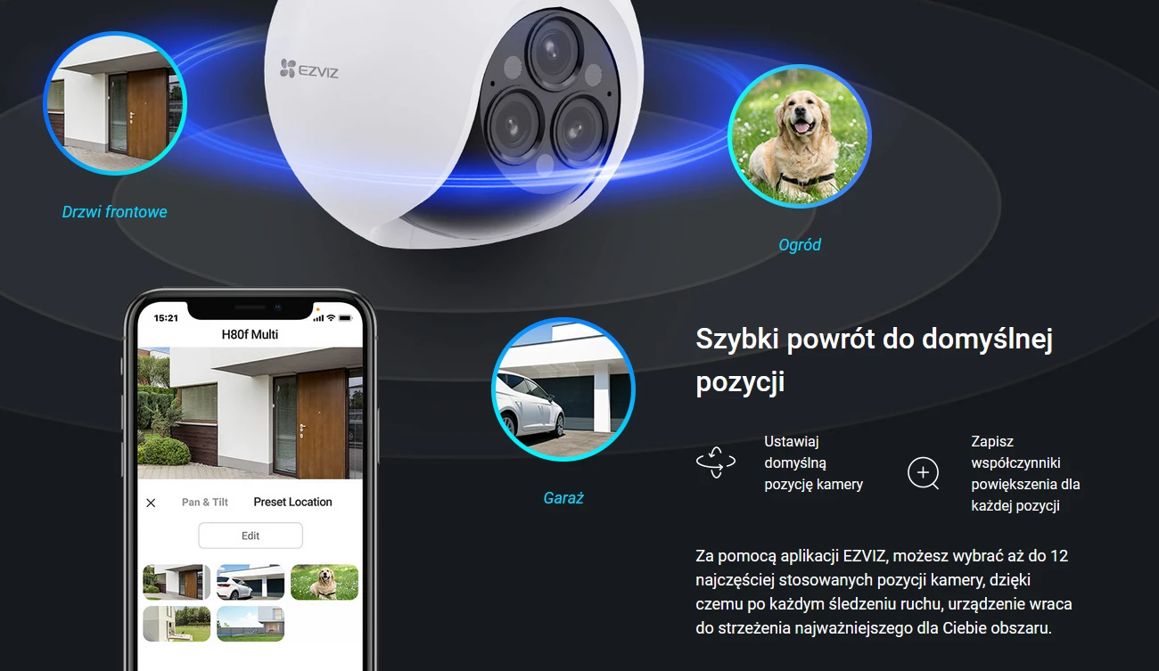 Modell H80f Multi 2K+ x3 utomhuskamera är svaret på nästan alla behov av att utöka ditt hemsäkerhetssystem. Dessutom skiljer den här intelligenta kameran mellan människor och fordon och gör att du kan spåra dem. Dessutom är den väderbeständig och har aktivt skydd och funktioner för tvåvägskommunikation. Det hela kan bekvämt styras via en app och erbjuder en rad praktiska funktioner.