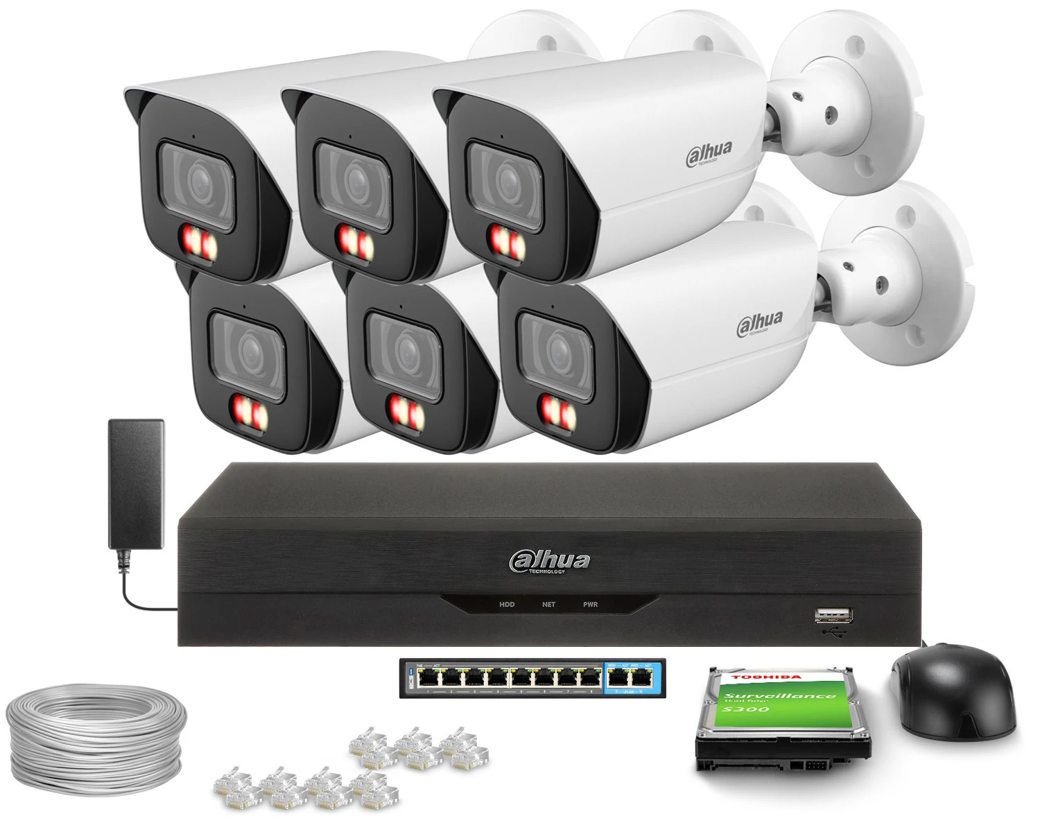 Zestaw do monitoringu IP Dahua 6x IPC-HFW3649E-AS-IL-0280B 6Mpx, Smart Dual Light 30m Full-Color + AcuPick