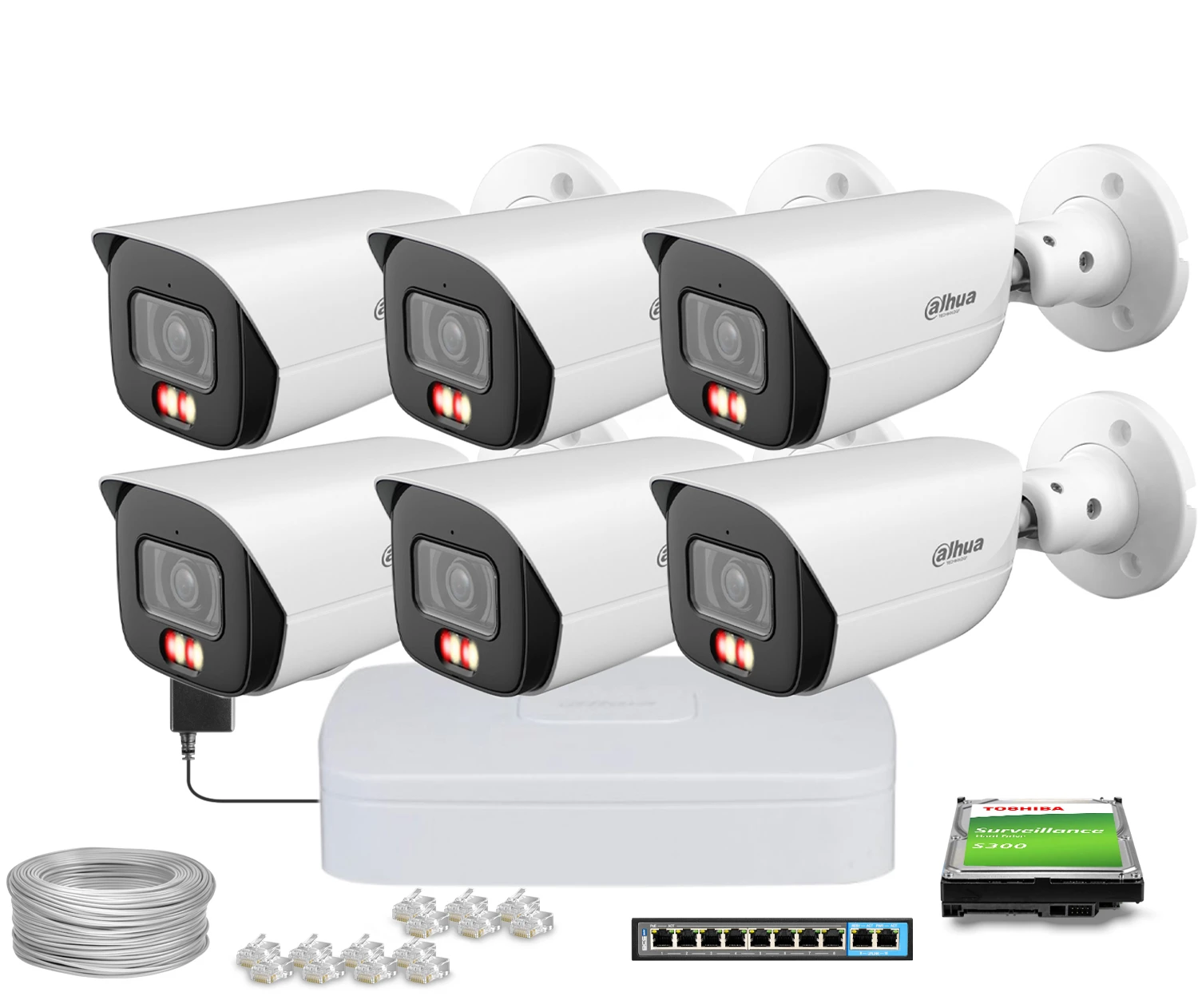Zestaw do monitoringu IP Dahua 6x IPC-HFW3849E-AS-IL-0280B 6Mpx, Smart Dual Light 30m Full-Color + AcuPick